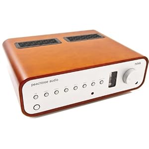 Amplificateur Peachtree Audio Nova Cerisier - Conception Hybride lampe/Mos-FET, amplification 2x80 Watts, convertisseur DAC 24 Bits/96 kHz, transformateur torique, 5 entrées numériques, 3 entrées et 3 sorties analogiques